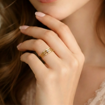 Golden Trio Band Stone Ring (RGR-023) ₹150.00