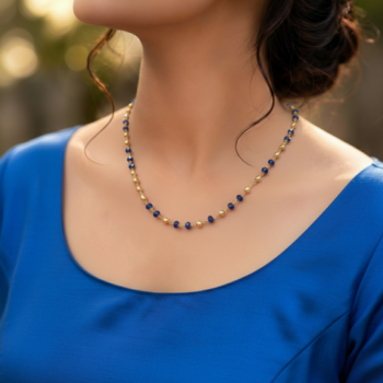 - Elegant blue faceted beads with gold-toned spherical accents