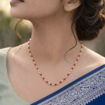 - Elegant combination of pearl-white and ruby-red beads